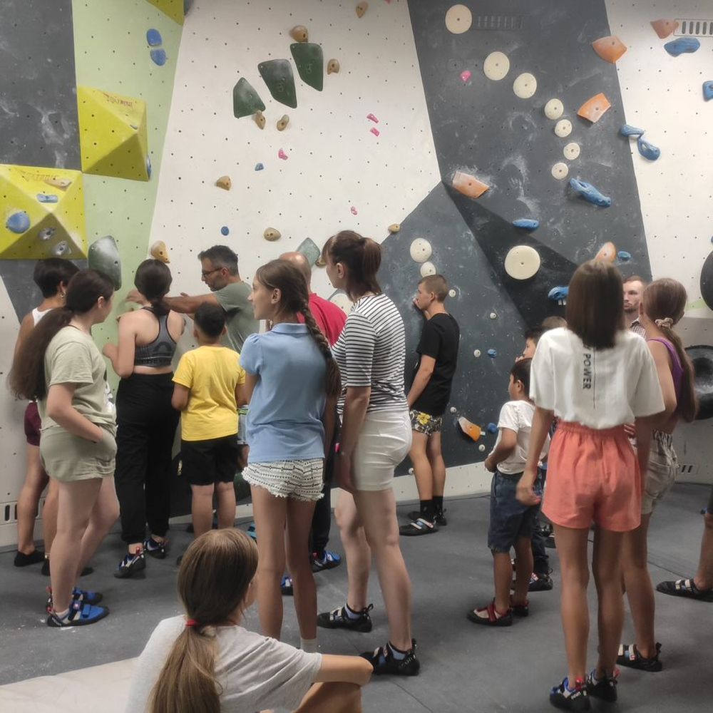 Das Angebot wurde dankbar von einigen ukrainischen Flüchtlingen aus der Mettnauhalle angenommen. Es war eine bunt-gemischte Gruppe aus Kindern, Jugendlichen und Erwachsenen. Einige mit vorheriger Klettererfahrung und für andere war es das erste Mal. Alle waren allerdings top motiviert und sind fleißig die Wände hoch und runter geklettert.